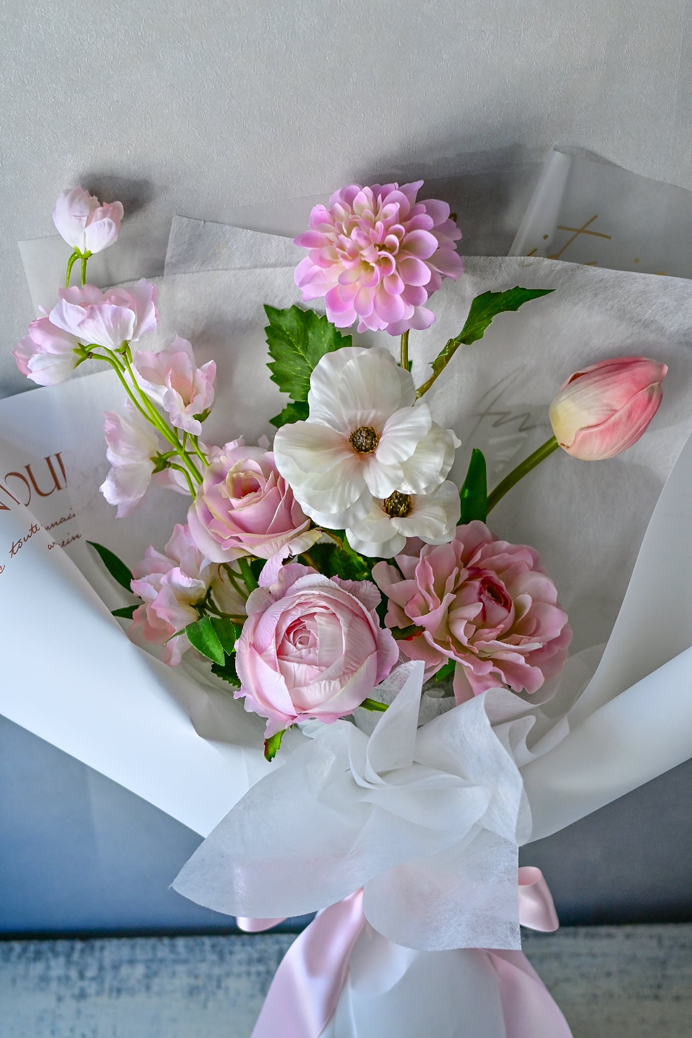 ラッピング花束Mは、お色味をお伺いしおまかせでおつくりする花束です。